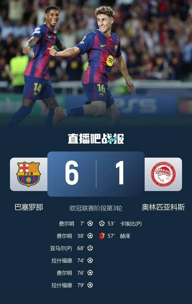 巴萨主帅汉斯·弗里克赛前或许未曾预料,面对希腊劲旅奥林匹亚科斯,他的球队会上演如此酣畅淋漓的进攻表演。北京时间10月22日凌晨,欧冠联赛阶段第3轮,巴塞罗那主场6-1血洗奥林匹亚科斯。