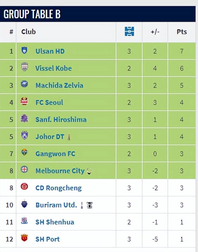 在主场接连败给柔佛新山和町田泽维亚后,成都蓉城的亚冠晋级希望破灭,跌出了晋级区,而上海申花和上海海港更是位列小组最后两名。