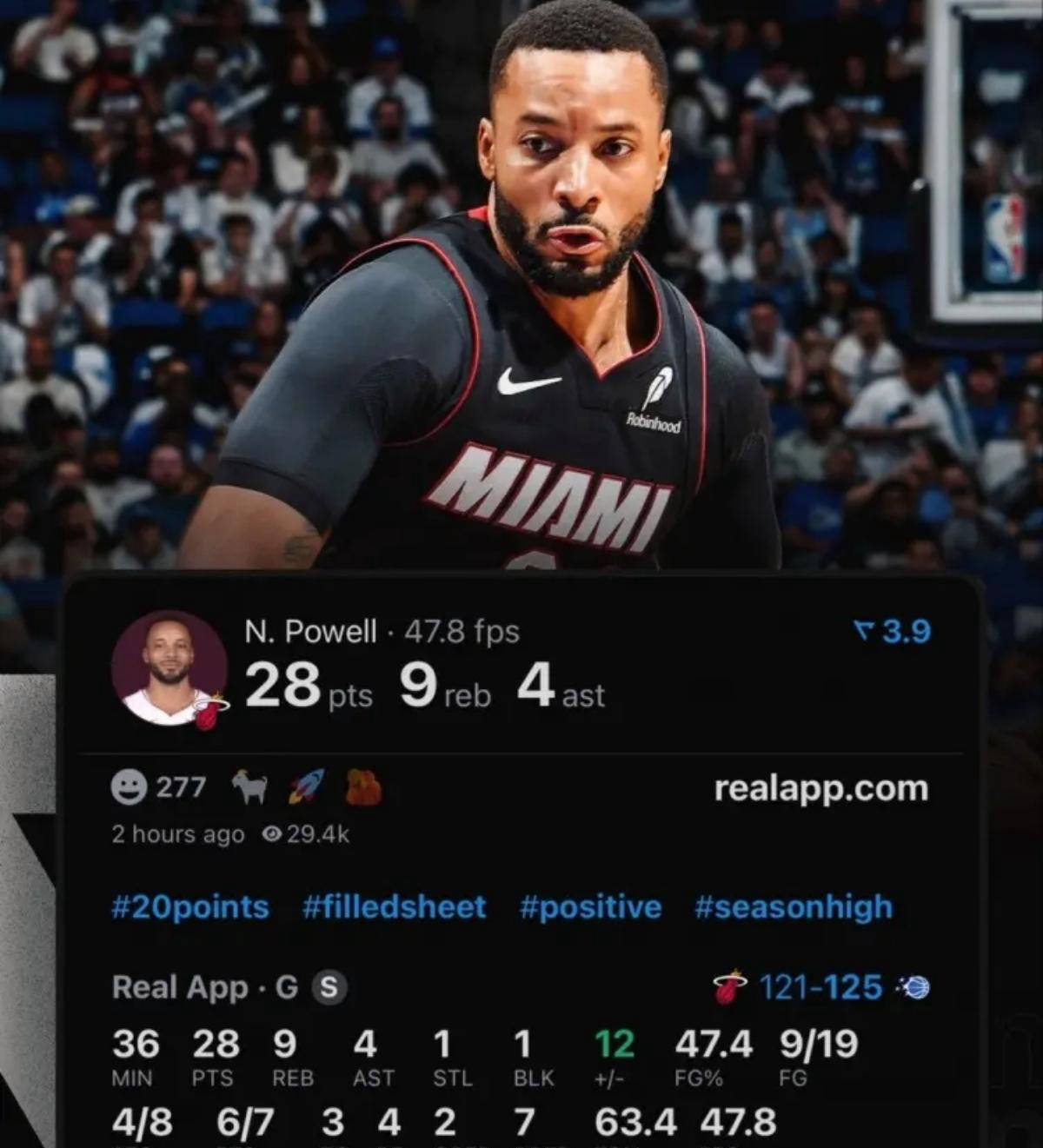 而恰逢其时,鲍科比也在今天上演他的火热首秀!在迈阿密热火对阵奥兰多魔术的比赛中,鲍科比全场19投9中,三分8中4,罚球7中6,高效得到28分9篮板4助攻1抢断1盖帽,正负值为+12。据统计,诺曼·鲍威尔首秀的28分是自2010年勒布朗·詹姆斯以来热火队历史上首秀得分最高的球员。