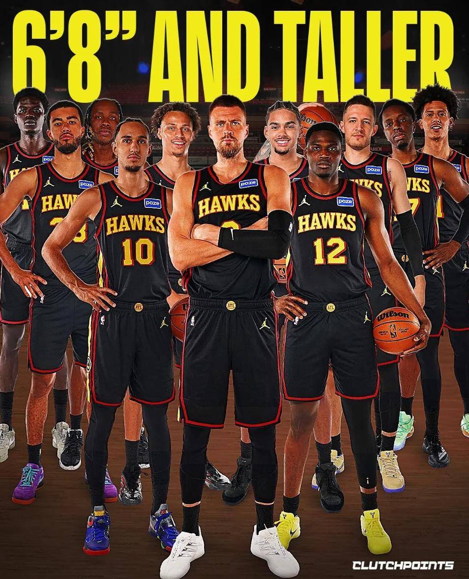 休赛期,老鹰队曾被寄予厚望,媒体纷纷吹捧其天赋异禀,全队拥有多达13名身高超过2.03米的球员,理论上在攻防两端都将占据巨大优势。名单如下:戴森(后卫,2.03米)、奥孔古(前锋,2.03米)、里萨谢(前锋,2.03米)、克雷伊奇(后卫,2.03米)、休斯坦(锋卫摇摆人,2.03米)、杰伦-约翰逊(前锋,2.06米)、贝西(中锋,2.08米)、盖耶(前锋,2.11米)、当特(中锋,2.11米)、纽厄尔(前锋,2.11米)、波尔津吉斯(前锋﹣中锋,2.18米)。