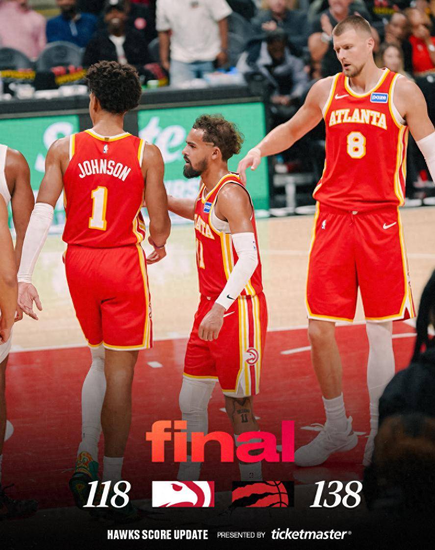 亚特兰大老鹰在休赛期被ESPN和The Athletic(TA)两大权威媒体评为运作优秀的球队,手握令人艳羡的“双A”评级,然而,新赛季揭幕战的表现却令人大跌眼镜。面对上赛季仅取得30胜52负、无缘附加赛的多伦多猛龙,老鹰队以118-138的比分惨败,令人质疑休赛期的运作成果。
