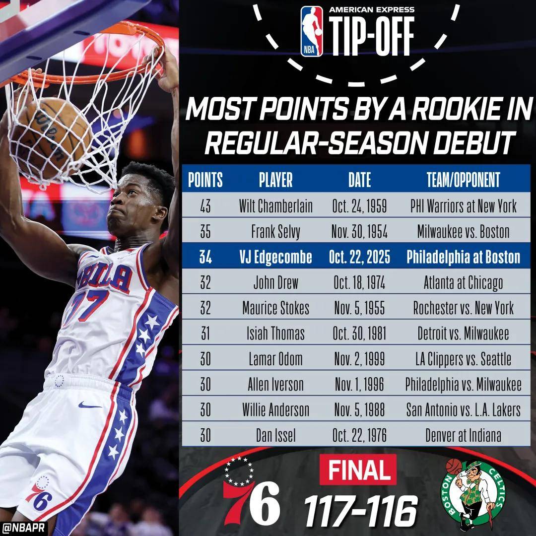 费城76人以117比116险胜凯尔特人,马克西在41分钟里砍下40分6次助攻,新科探花秀埃奇库姆出场42分钟,得到34分7个篮板3次助攻,展现了出色的天赋。对手方面,杰伦·布朗首次以单核身份带队,贡献25分6篮板4助攻。值得一提的是,本场比赛恩比德复出,但状态极差,仅出场20分钟,投篮9中1,只拿到4分6板2助攻,正负值全场最低为-16,让人不得不怀疑76人是否需要在合同执行期间尽早做出调整。