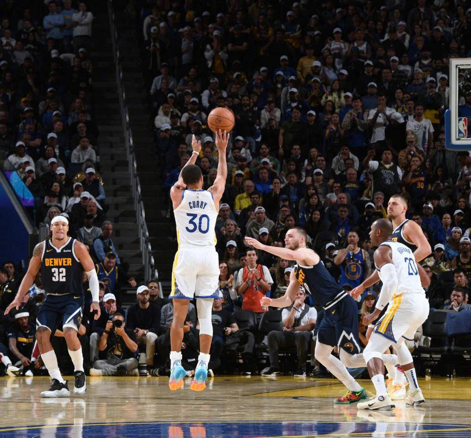 北京时间10月24日,NBA常规赛上演了一场惊心动魄的对决。金州勇士在主场经历加时赛,最终以137比131险胜丹佛掘金。这场比赛再次成为斯蒂芬·库里个人的表演舞台——他出战36分钟,轰下42分6篮板7助攻3抢断1封盖,三分球12中6,罚球8中8,高效率地主宰了比赛格局。
