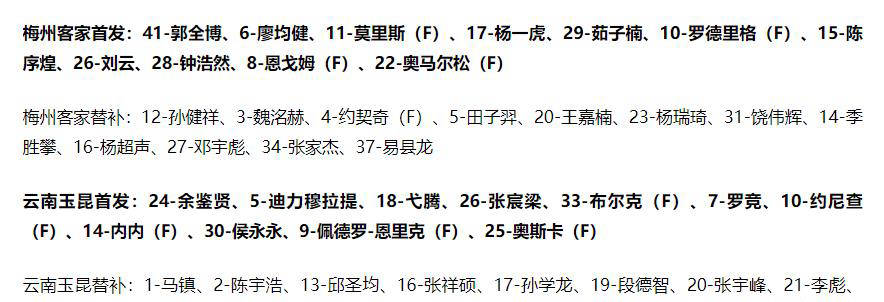 双方首发阵容显示,云南玉昆派出了强大的阵容,五外援同时首发出场,表明他们不会让梅州客家轻松取得积分。相比之下,梅州客家的首发阵容只有四位外援上场,约契奇则在替补席等待机会,这使得梅州客家想要在比赛中全取三分变得更加困难。