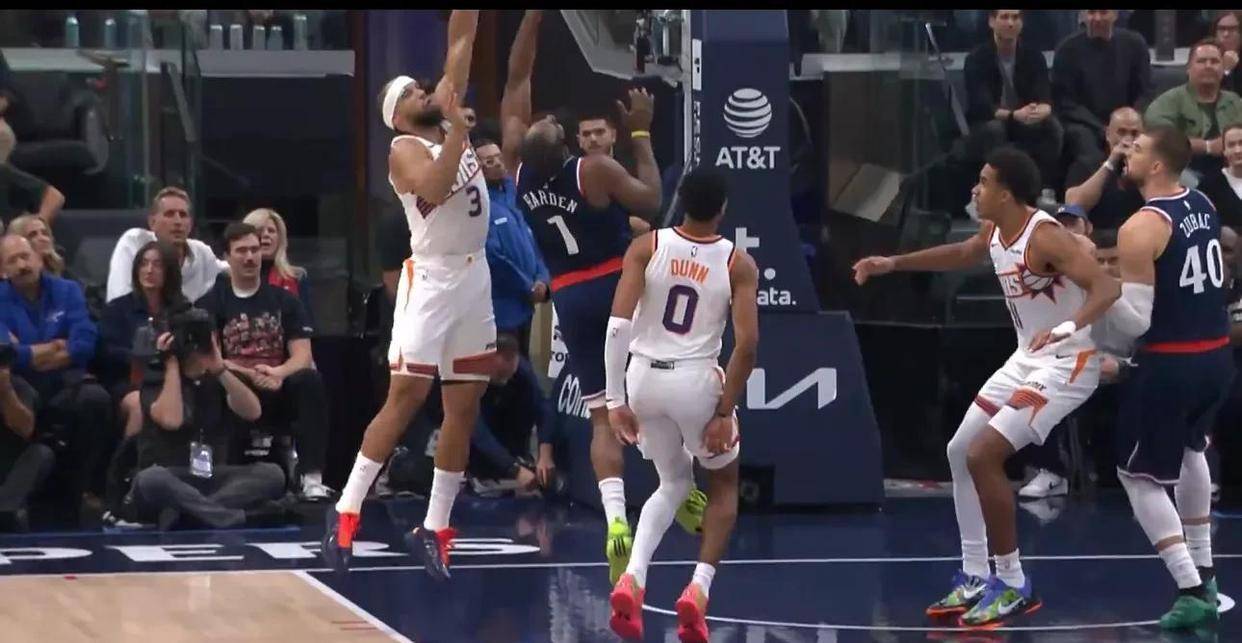 比赛一开始,双方就打得非常激烈,互相进攻,太阳队先是以9比6领先。不过很快哈登就开始发力了,先是来了个2 1,接着又命中一记三分,紧接着小卡也连着得了4分,快船直接以14比11反超。