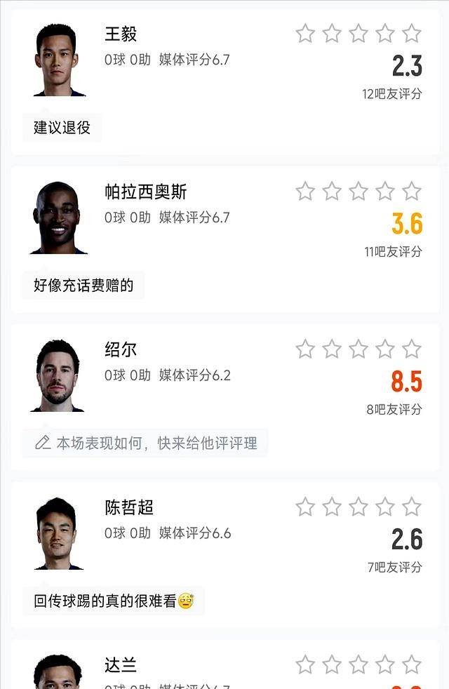 另一位表现糟糕的球员是陈哲超,同样是首发踢满全场,但他的发挥同样令人失望。15次丢失球权,8次传中仅有1次成功,争顶成功率更是0%。他和王毅被球迷戏称为“卧龙凤雏”,意思是两人表现一样烂,堪称球队的“双坑”。不少球迷呼吁主教练邓卓翔赶紧弃用这两人,否则接下来的比赛还得继续输。