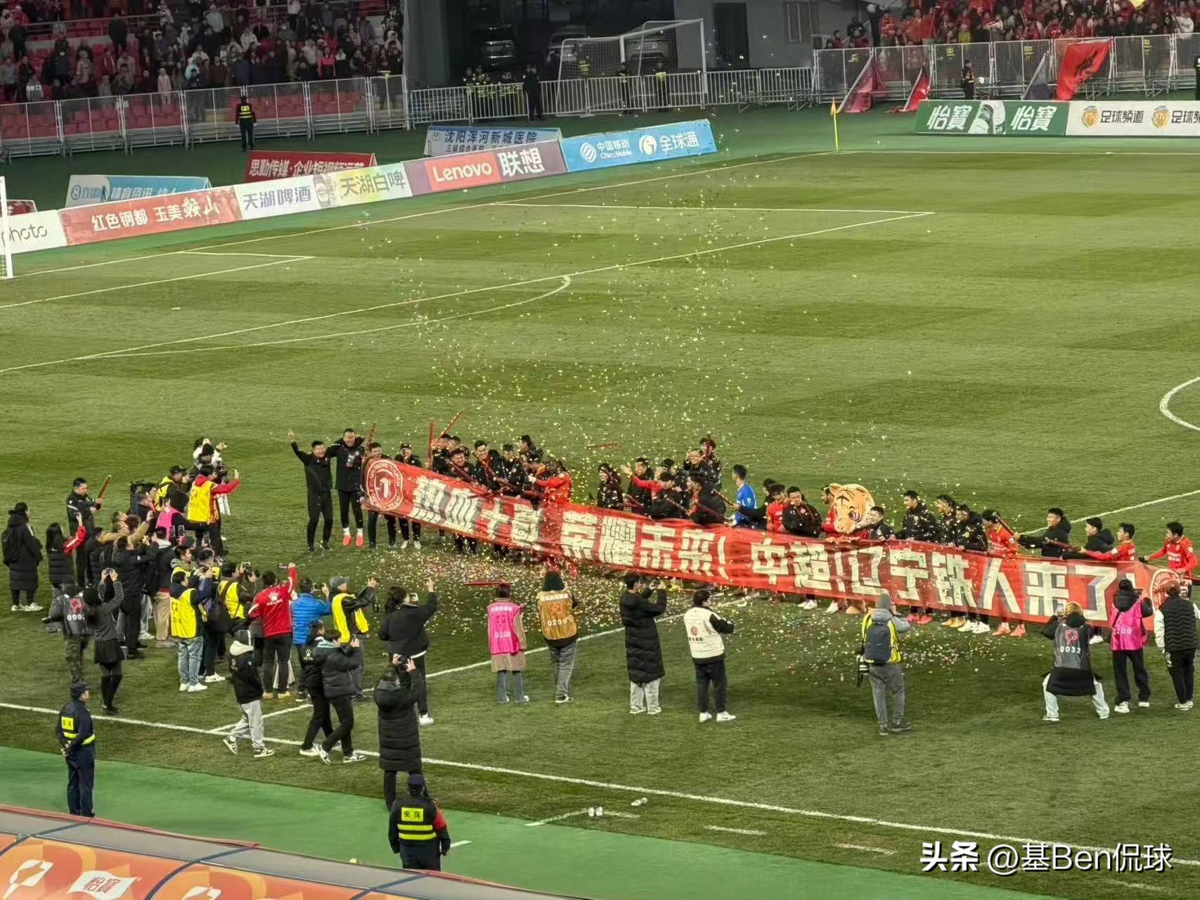 在本场比赛结束之后,辽宁铁人队也是立刻在场内进行了相关的庆祝活动,并且还有花车游行现场的诸多球迷也随着铁人队一起进行庆祝,并没有过早离开现场