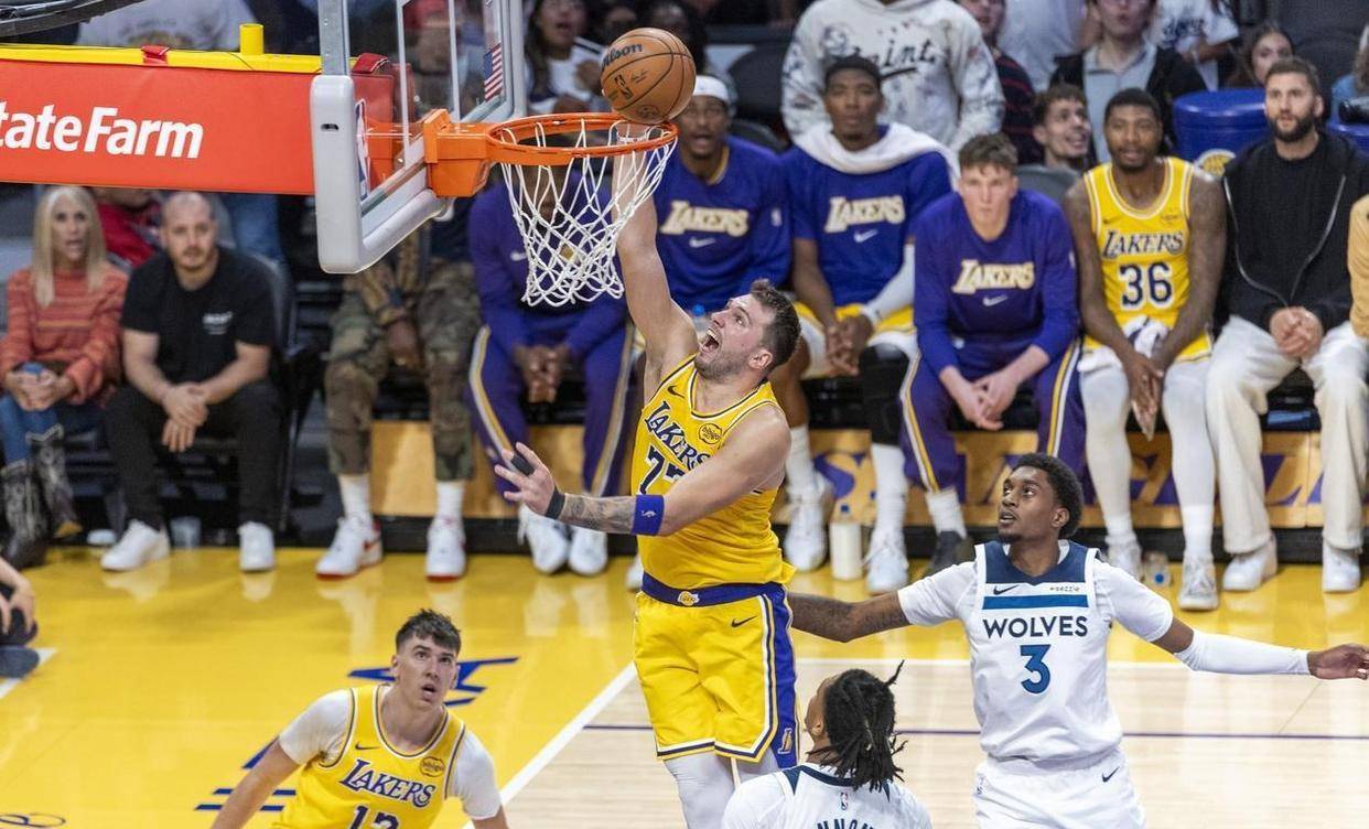 比赛开局森林狼反客为主,打出6-0的小高潮,并一度将领先优势扩大到10分。 关键时刻,东契奇站了出来,首节独揽23分,追平了科比和库兹马保持的湖人队史首节得分纪录。 他的单节爆发为整场比赛奠定了基调,帮助湖人在首节结束时将分差缩小至36-40。