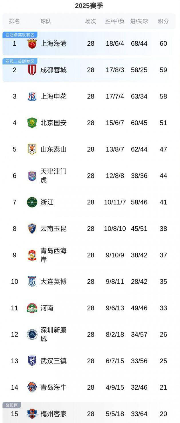 在最新积分榜上,成都蓉城重新夺回榜首位置,上海海港暂时失去了领先地位,上海申花继续保持在积分榜前列。这样的争夺和激烈角逐,让中超联赛更加精彩。