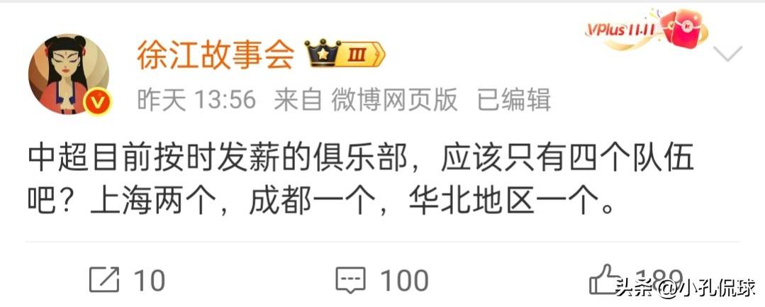 武汉三镇主场输给深圳新鹏城,比分定格在1比2,这也是他们最近14场比赛中的仅有一场胜利。武汉三镇近期状态低迷,部分原因或许与球队面临的资金困境相关。昨天,知名博主徐江在社交媒体上发文表示:目前中超联赛中,按时发放薪水的俱乐部大概只有四支,其中上海有两支,成都一支,华北地区一支。