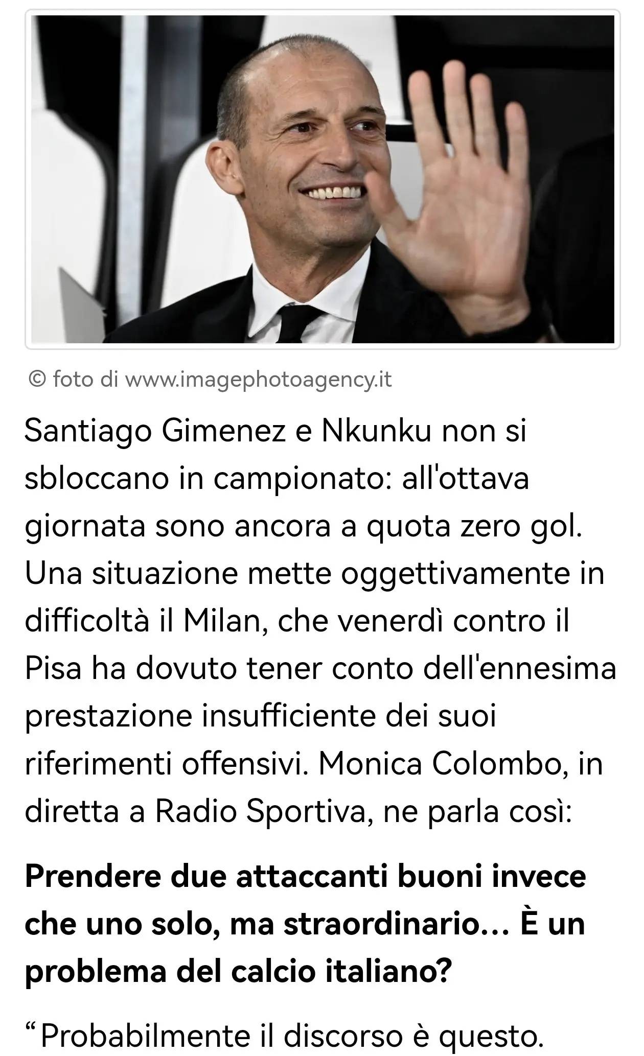 “引进两名不错的前锋,而非一名顶尖前锋……这是意大利足球的通病吗?”