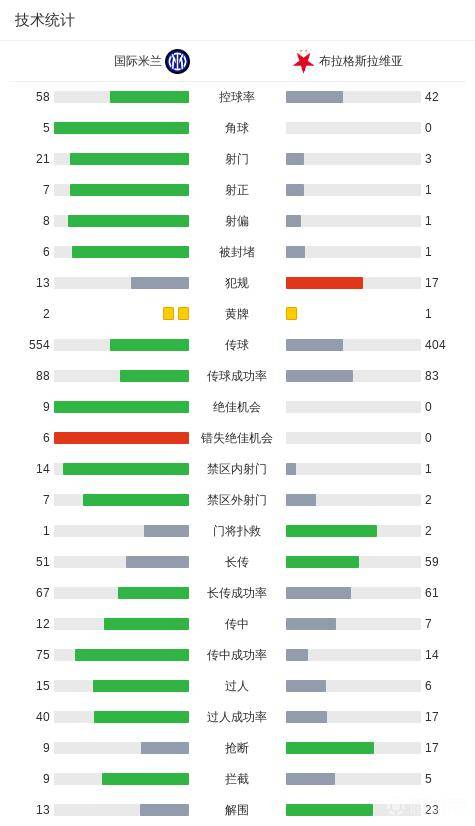 数据层面更能体现比赛的悬殊差距:国际米兰全场控球率高达70%,完成21次射门、14次射正,而布拉格斯拉维亚仅有3次射门,进攻威胁极为有限。这样的数据对比既反映了两队硬实力的差距,也凸显了布拉格斯拉维亚受主力伤病影响、客场作战状态受限的问题。