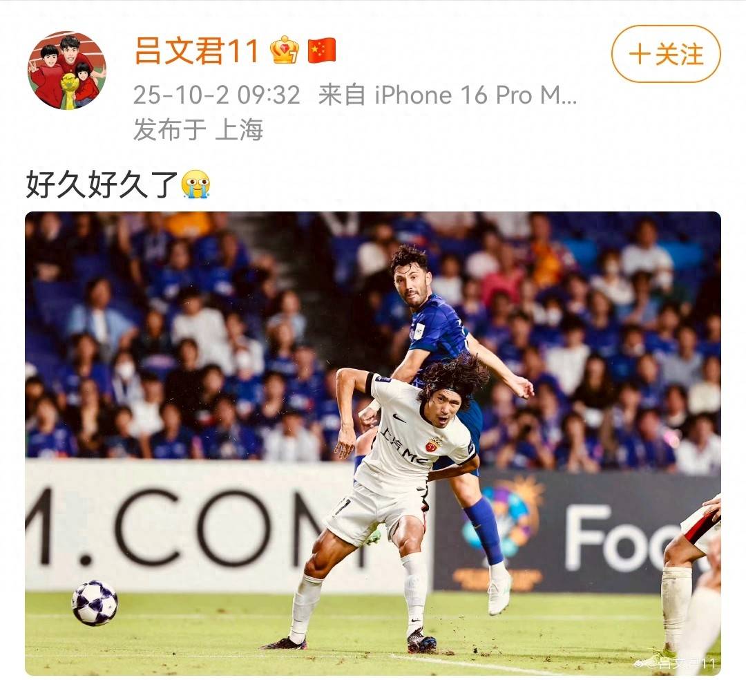在本轮亚冠精英赛比赛中,上海海港老将吕文君在今年6月的中超比赛登场后,时隔3个多月终于再次代表球队登场比赛。赛后吕文君不禁发表社媒感慨:好久好久了。球迷们纷纷留言鼓励,毕竟吕文君这样崇明一期老将的比赛,看一场少一场了。同时,也有部分球迷对主教练穆斯卡特放弃比赛认为无法理解。