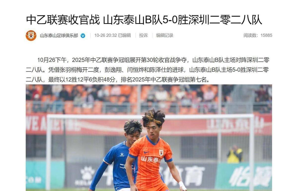 在中乙联赛的收官之战中,山东泰山B队以5-0大胜深圳2028队,尽管比赛结果可能很快被遗忘,但在第44到46分钟发生的一幕却让所有山东球迷久久不能平静。21岁的济南小将张羽桐在短短2分钟内完成了“闪电梅开二度”,瞬间点燃了主场气氛。