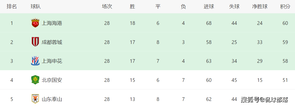 赛前积分榜,上海海港积60分高居第一,成都蓉城积59分位列第二,上海申花积58分排名第三,三队只有2分的差距,争冠非常激烈。