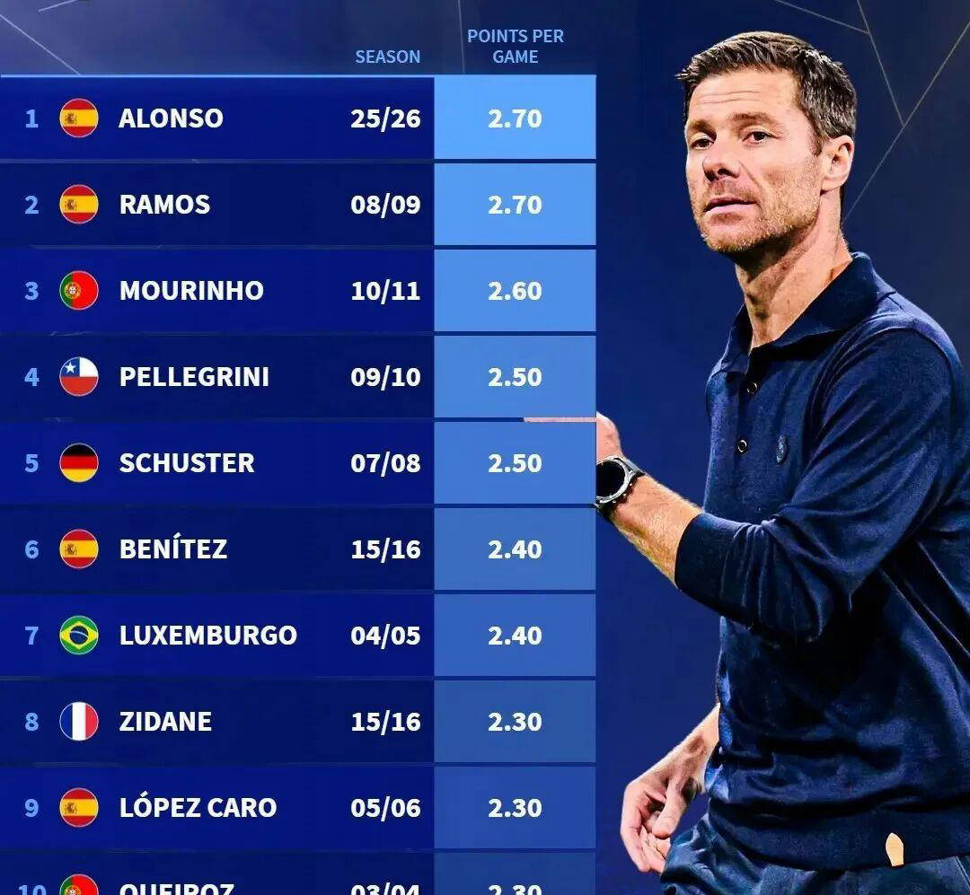 排除了安切洛蒂和穆里尼奥这两位大名帅。事实上,自21世纪以来,皇马曾由其他一线名帅执教过,比如卡佩罗、贝尼特斯、博斯克、齐达内等等。然而在执教前十场比赛中取得27分的成就,与阿隆索齐名的是一位声名不显赫的二线主帅。
