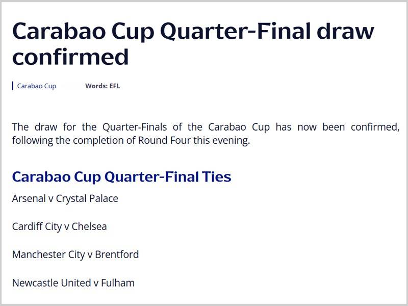 联赛杯16强的比赛已经全部结束,利物浦在本轮派出了替补阵容,结果不出所料,他们以三球惨败于水晶宫,成为曼联之后,又一支被淘汰的传统六强球队。此次,英超一共13支球队被淘汰。随后,八强的抽签结果也已揭晓,切尔西在抽签中占得便宜,遇到了相对较弱的对手,而阿森纳则将再次面对水晶宫。