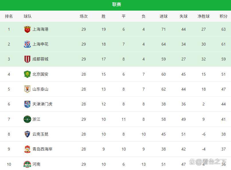 积分榜更新:海港63分、申花61分、蓉城59分! 北京国安和山东泰山早掉队了! 这赛季中超就是上海双雄的二人转! 但最后一轮万一海港翻车……那剧情绝对能上热搜第一!