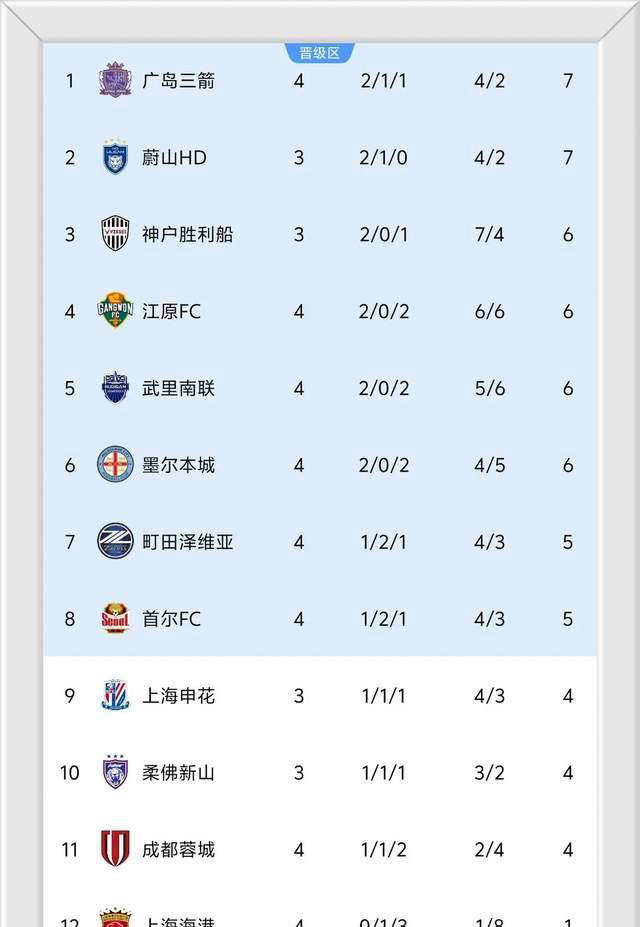 本次比赛日结束后,中超两支球队的排名继续低迷,成都蓉城积4分排名倒数第二,上海海港仅积1分,仍垫底于东亚区,而武里南联队以6分位列东亚区第五。