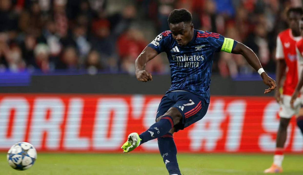 萨卡的点球破门也让他成为阿森纳队史首位连续4个欧冠客场都能取得进球的球员。