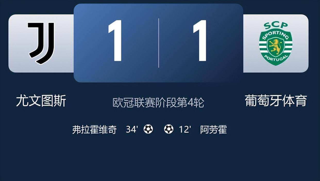 尤文图斯在主场都灵的安联球场迎战葡萄牙体育。上半场,M-阿劳霍先打破僵局,特林康射门击中横梁,弗拉霍维奇也进了球。下半场,瓦扬尼迪斯错失良机。最终双方1比1握手言和。积分榜上,尤文四轮比赛只拿到3分,排名23位,而葡萄牙体育则以7分排在第10位。