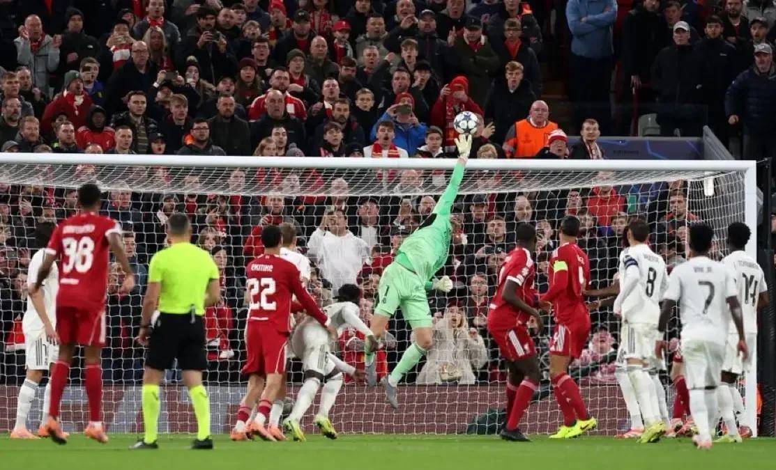 库尔图瓦过往面对利物浦时,总能有神奇般的发挥。在过去的五次交锋中,他已经完成了多达29次扑救,其中包括2022年欧冠决赛的那场经典之战中的9次扑救。