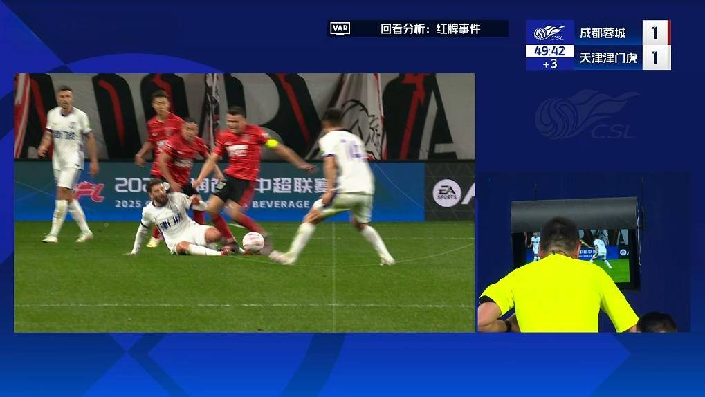 在第二轮比赛中,成都蓉城主场以1比2不敌天津津门虎,比赛的最大争议出现在周定洋被判踩踏犯规并吃到红牌。当时,主裁判在VAR的提醒下去场边查看回放,随后决定出示红牌。然而,经过足协评议组的调查后,他们认为周定洋的犯规应判黄牌而不是红牌,因为他的动作“没有达到使用过度力量或野蛮方式的程度,不构成严重犯规,不应出示红牌”。但为时已晚,少了周定洋这位球队的绝对主力和队长,成都蓉城接着又丢了一个球,最终遗憾地输给了天津津门虎。