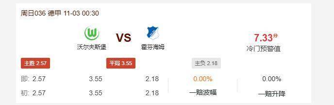 周日036德甲联赛推荐:沃尔夫斯堡VS霍芬海姆