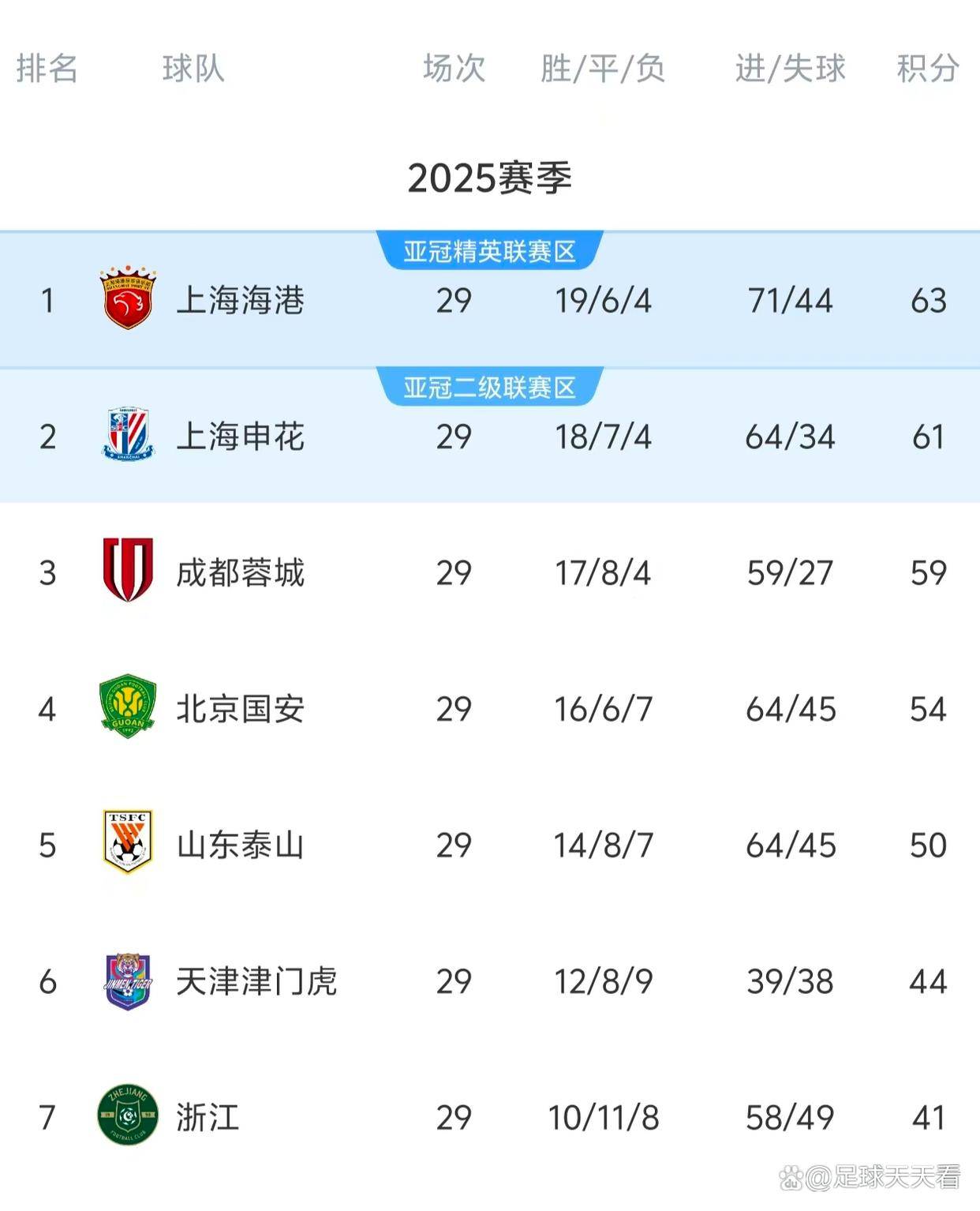 积分榜上,上海海港以63分傲视群雄,上海申花紧随其后,积61分,成都蓉城则以59分位居第三。由于仅剩最后一轮比赛,成都蓉城已提前退出冠军争夺。