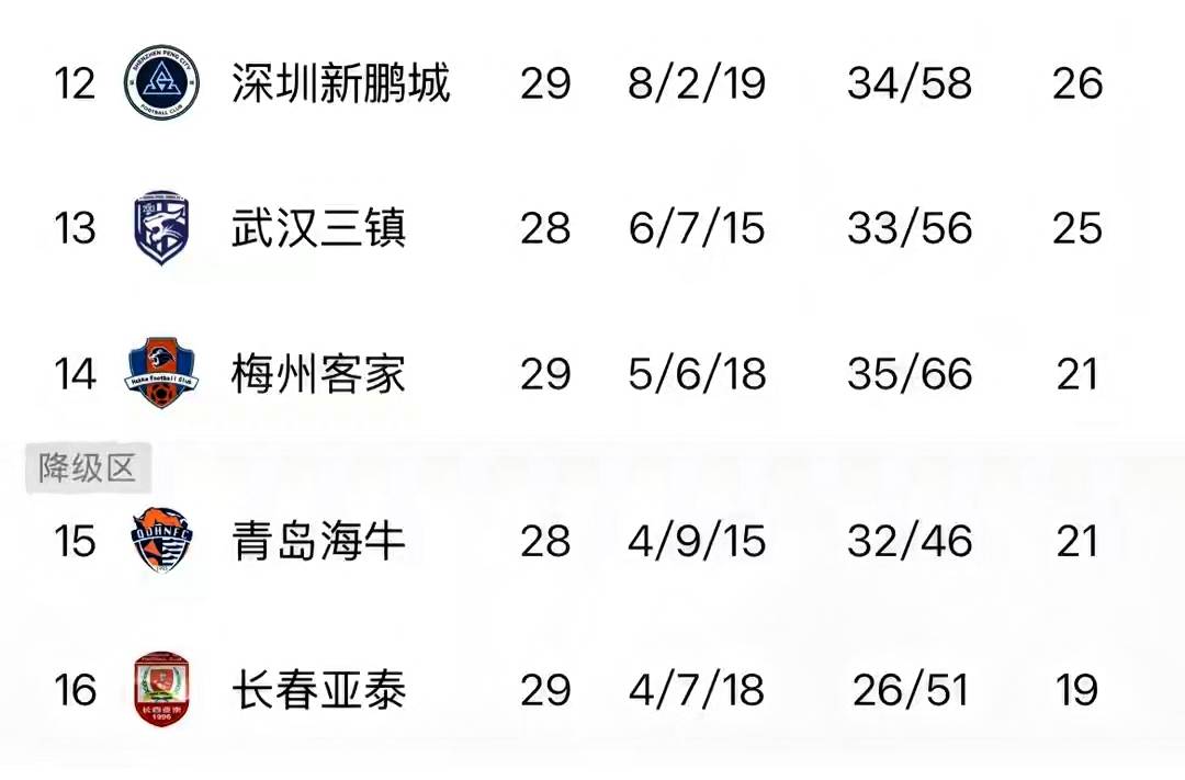 其实这场比赛结果的背后,藏着很清晰的积分逻辑,咱们一算就明白。等到第29轮所有比赛都打完,深圳新鹏城排在积分榜第12名,武汉三镇排在第14名,这俩队比降级区里的大连英博(人家只有30分)和长春亚泰(才26分)至少多了3分,而且剩下的比赛里,他们跟这俩降级区球队也没直接碰面的机会了,所以保级的悬念这一下就彻底没了。