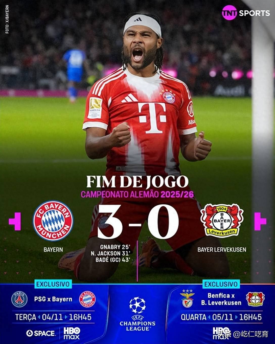 从第25分钟格纳布里的首开纪录到第31分钟雅克松的头球破门,直至第43分钟药厂后卫巴代的乌龙进球,即便这是一场拜仁并没有派出凯恩,奥丽塞和迪亚斯的比赛,但替补出战的拜仁却具备了更积极的比赛求胜欲和意欲证明自己的动力。