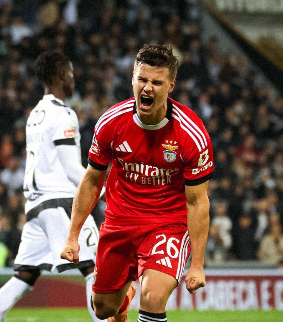 下半场一开场不到8分钟,本菲卡就打破了僵局。客队开出角球,托马斯-阿劳霍在人群中高高跃起,头球攻门,皮球直接飞进了远角,本菲卡1-0领先,这开局简直太梦幻了!