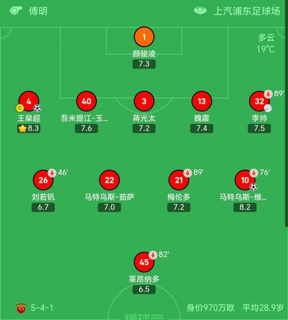 在海港其他首发球员中,维塔尔得到了8.2分,吾米提江得到了7.6分,李帅7.5分,魏震7.4分,颜骏凌7.3分,蒋光太和梅伦多分别拿到了7.2分,而如萨得到了7.0分,刘若钒则得到了6.7分。