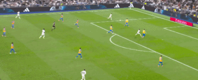 比赛进行到第44分钟,贝林厄姆在禁区弧顶摆脱防守后直接远射,球精准地飞入网底,帮助皇马以3-0扩大了领先优势。