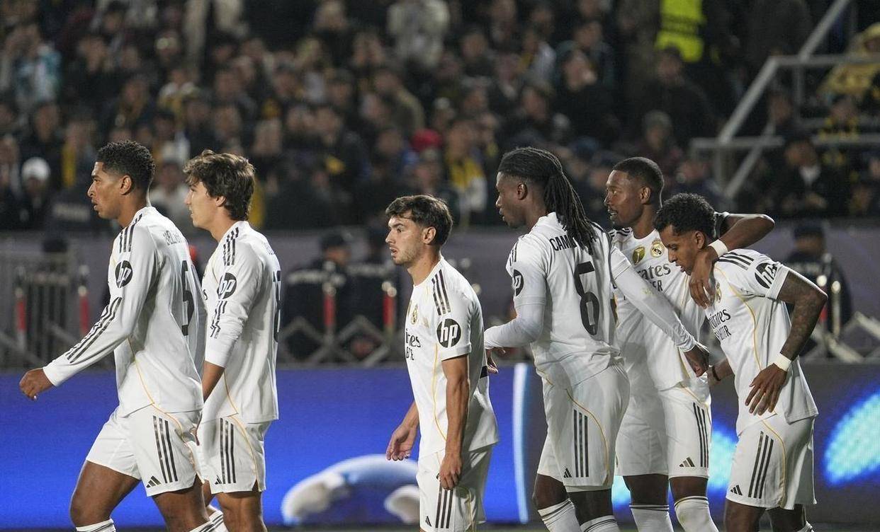 皇马倒是稳坐钓鱼台。 阿隆索直接照搬国家德比干掉巴萨的442阵型,库尔图瓦把门,米利唐和赫伊森镇守中路,巴尔韦德客串右后卫。 中场钻石站位里,琼阿梅尼扫荡,卡马文加协防,贝林厄姆和居勒尔双核驱动,前面摆着姆巴佩和维尼修斯两枚导弹。 人家西甲11场赢10场,欧冠3战全胜,姆巴佩场均52分钟进1球,这火力够利物浦喝一壶。