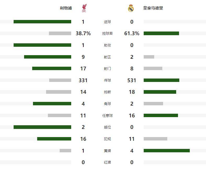 第75分钟维尼修斯左路倒三角传中,姆巴佩跟进打门偏出,错失扳平比分的良机,第82分钟阿诺德替补登场迎战旧主,但登场之后并没有创造出威胁,反倒是利物浦最后阶段有威胁的进攻一波接一波,皇马靠着库尔图瓦的高接低挡才没有让分差被进一步拉大。