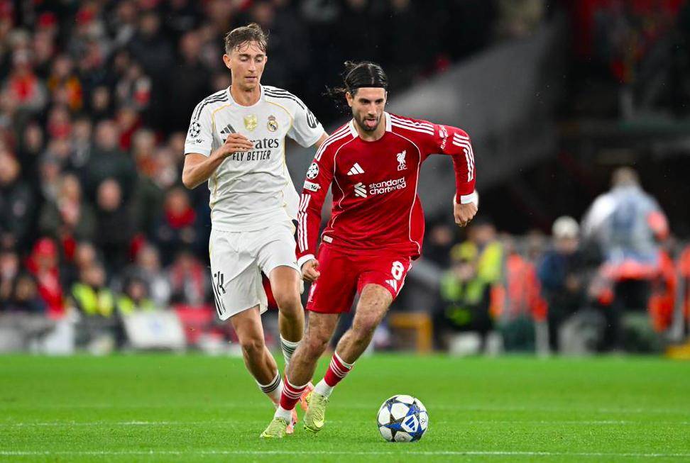 第61分钟,贝林厄姆的犯规送给利物浦任意球,索博斯洛伊的传球落点精准,麦卡利斯特抢到前点,终于攻破了库尔图瓦的十指关。