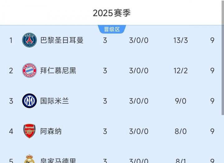 在欧冠赛事前三轮结束后,各联赛均有一支球队全胜,国际米兰则暂列意甲第2,仅落后那不勒斯1分。