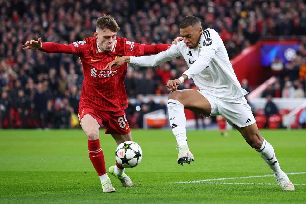 本场比赛中,利物浦的索博斯洛伊错失了一次单刀机会,皇马的琼阿梅尼在禁区内犯规,VAR回放后裁判未判罚点球,皇马门将库尔图瓦也多次作出神勇扑救。上半场两队以0-0平局进入休息。下半场,利物浦的麦卡利斯特头球破门,最终以1-0战胜皇马,送给后者本赛季欧冠首败。