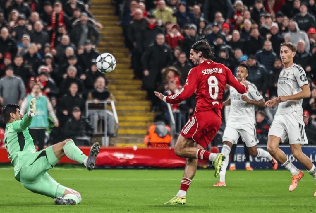 比赛的进程非常胶着,双方在上半场都有不错的机会,但都未能破门。利物浦的索博斯洛伊曾有一次单刀机会,但被皇马门将库尔图瓦用脚扑出。皇马的楚阿梅尼也因为手球被VAR判定取消了一个进球机会。而皇马门将库尔图瓦则多次上演神扑,帮助球队保持住球门不失。尽管如此,利物浦的进攻持续施压,尤其是在4231阵型下,萨拉赫和索博斯洛伊的边路配合一直在不断威胁皇马的防线,这也为他们最终的制胜球创造了机会。
