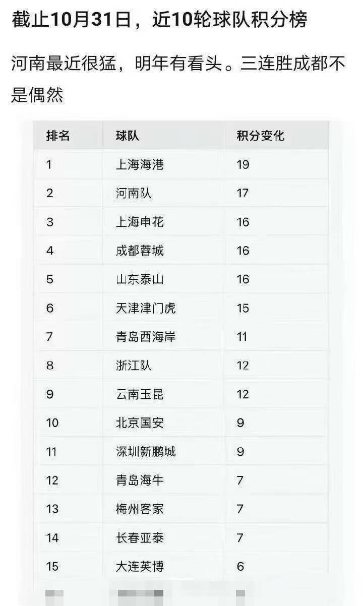 拉莫斯的决定接手这样一支处于泥潭中的球队,显然做足了准备。在适应了短暂的过渡期后,河南队的战绩逐渐回升,终于成功摆脱了降级区。截止到10月31日,球队在近十轮比赛中取得了优异的成绩,在整个中超排名中位列第二,这一成绩的含金量甚至超过了五年前的第二阶段第一名。