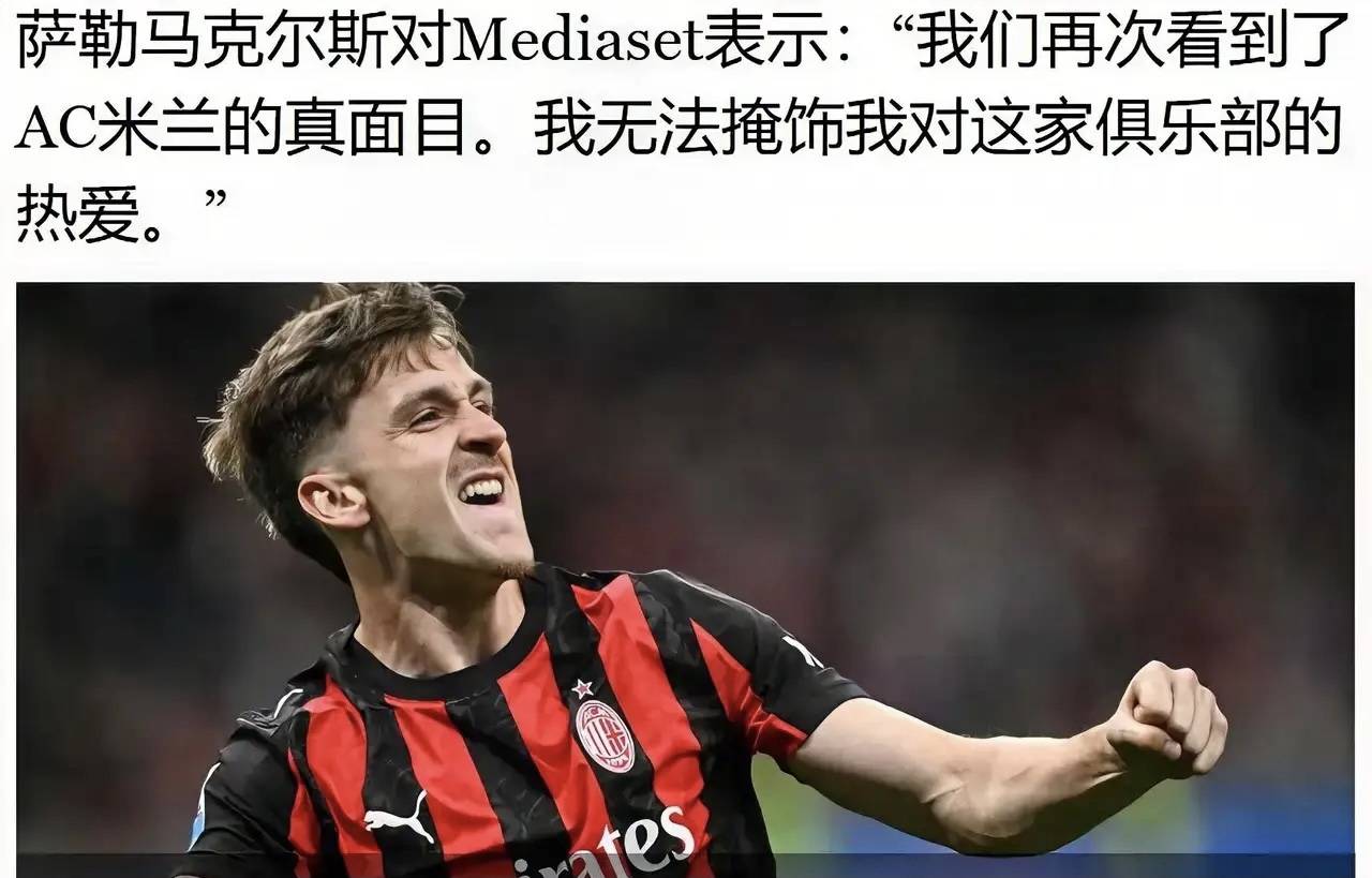 萨勒马克尔斯!萨勒马克尔斯接受采访表示我对米兰无比热爱,萨勒马克尔斯同时谈到了米兰本赛季表现他说我们还在磨合阵容,相信很快球迷就能看到他们心中的那支米兰。